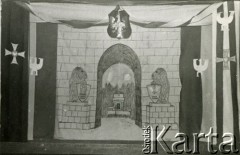 1941-1942, Dorsten, III Rzesza Niemiecka. Obóz jeniecki oficerów Wojska Polskiego, dekoracje ołtarza w kaplicy obozowej. Fot. zbiory Ośrodka KARTA, Pogotowie Archiwalne [PA_024], przekazali Dorota i Tomasz Wojciechowscy