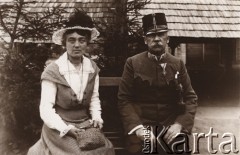 Ok.1900, brak miejsca. Fotografia ślubna Emilii i Hermana Kaul, znaleziona w walizce pozostawionej przez wysiedloną niemiecką rodzinę. Fot.NN, zbiory Ośrodka KARTA, kolekcję zdjęć przekazał Jerzy Okrzesa.