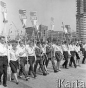 22.07.1964, Warszawa, Polska. Plac Defilad, uroczyste obchody dwudziestolecia PRL. Członkowie organizacji młodzieżowych przechodzą przed trybuną. Fot. Romuald Broniarek/KARTA