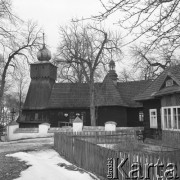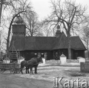 Lata 20., Warszawa, Polska. Ulica Grójecka i plac Narutowicza. Na pierwszym planie kościół św Jakuba Apostoła i drewniana dzwonnica. Fot. NN, zbiory Ośrodka KARTA