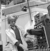 Lata70-te, Bielsko-Biała, woj. Katowice, Polska. Pilotka i instruktorka szybowcowa Pelagia Majewska w hali produkcyjnej Doświadczalnych Zakładów Szybowcowych. Fot. Kazimierz Seko, zbiory Ośrodka KARTA