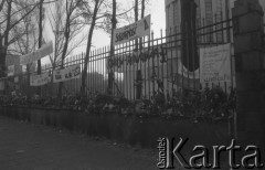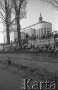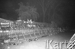 3.11.1984, Warszawa, Polska. Pogrzeb księdza Jerzego Popiełuszki w Kościele św. Stanisława Kostki na warszawskim Żoliborzu - wierni zgromadzeni na Placu Komuny Paryskiej (ob. Plac Wilsona). Fot. NN, zbiory Ośrodka KARTA