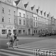 Wrzesień 1982, Opole, Polska Rynek, dwie dziewczyny przechodzące przez ulicę. Fot. Jarosław Tarań, zbiory Ośrodka KARTA [82-10]