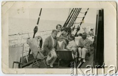 Przed wrześniem 1939, Polska. Podróż statkiem "Kościuszko". Pierwszy z prawej doktor Kazimierz Wolfram – przed wojną wybitny chirurg warszawski, we wrześniu 1939 aresztowany, więzień obozu w Starobielsku, rozstrzelany w Charkowie. Fot. NN, zbiory Ośrodka KARTA, kolekcja Kazimierza Wolframa [AW III/329]