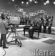 Czerwiec 1972, Zielona Góra, Polska. Halina Żytkowiak z zespołem Trubadurzy. Z akordeonem Ryszard Poznakowski. Występ podczas VIII Festiwalu Piosenki Radzieckiej. Fot. Romuald Broniarek, zbiory Ośrodka KARTA.