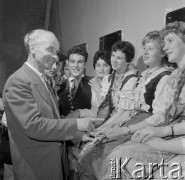 lata 60-te, Kozłowa Góra k/Piekar Śląskich, Polska. Występ Zespołu Pieśni i Tańca ZMW Kozłowa Góra, dziewczyny w strojach regionalnych. Fot. Kazimierz Seko, zbiory Ośrodka KARTA.