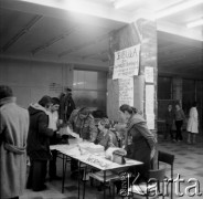 1983, Warszawa, Polska. Msza za Ojczyznę w Kościele św. Stanisława Kostki na warszawskim Żoliborzu. Widok na wiernych zgromadzonych wokół ołtarza. Na filarze - transparent w kształcie konturów terytorium Polski ze zdjęciem obrazu Matki Boskiej oraz z napisem: "Sierpień'80 - W Tobie nasze zwycięstwo - Sierpień'83". Fot. Adam Szymański, zbiory Ośrodka KARTA, kolekcję zdjęć przekazał Adam Szymański