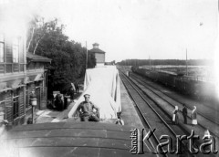 Lata 20., Polska. Grupa osób. Fot. z albumu porucznika Jana Obłoczyńskiego z Batalionu Chemicznego WP, zbiory Ośrodka KARTA, przekazała Jolanta Wolszczynin.