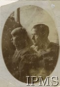 Maj 1944, San Angelo, Włochy. Podpis oryginalny: "Wyczekiwanie przed natarciem. Dwaj żołnierze siedzący na ziemi, jeden z nich, zamyślony, założył ręce na kolana". Fot. kpt. Zajączkowski, Instytut Polski im. Gen. Sikorskiego w Londynie [album negatywowy L-I Monte Cassino] - płachta 41