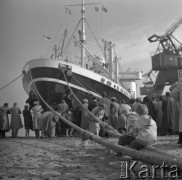 Październik 1958, Gdynia, Polska. MS "Stefan Batory" cumuje przy nabrzeżu gdyńskiego portu. Fot. Romuald Broniarek, zbiory Ośrodka KARTA