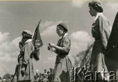 Wrzesień 1958, Bydgoszcz, Polska. Festyn harcerski - grupa harcerek podczas apelu. Fot. Romuald Broniarek, zbiory Ośrodka KARTA